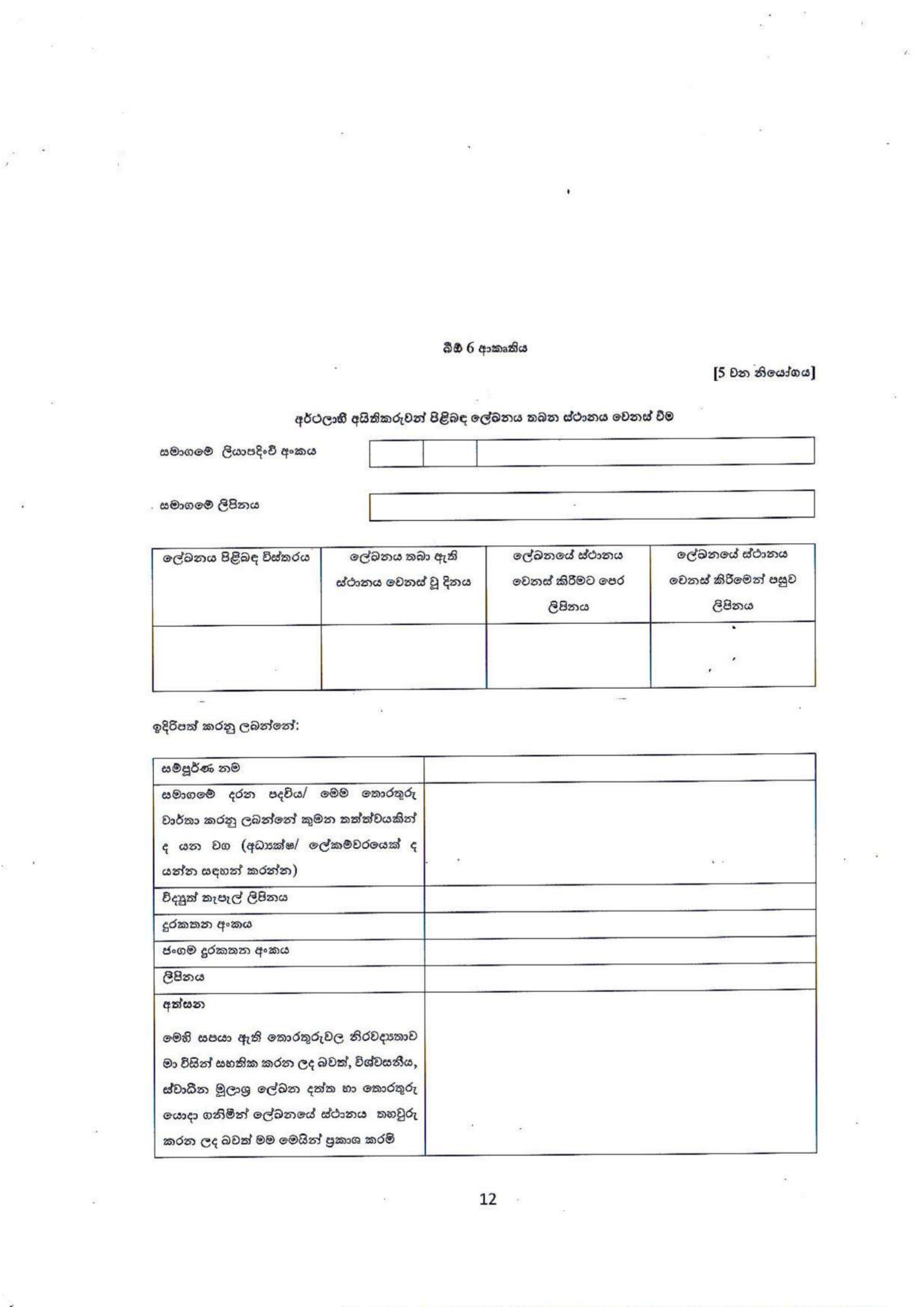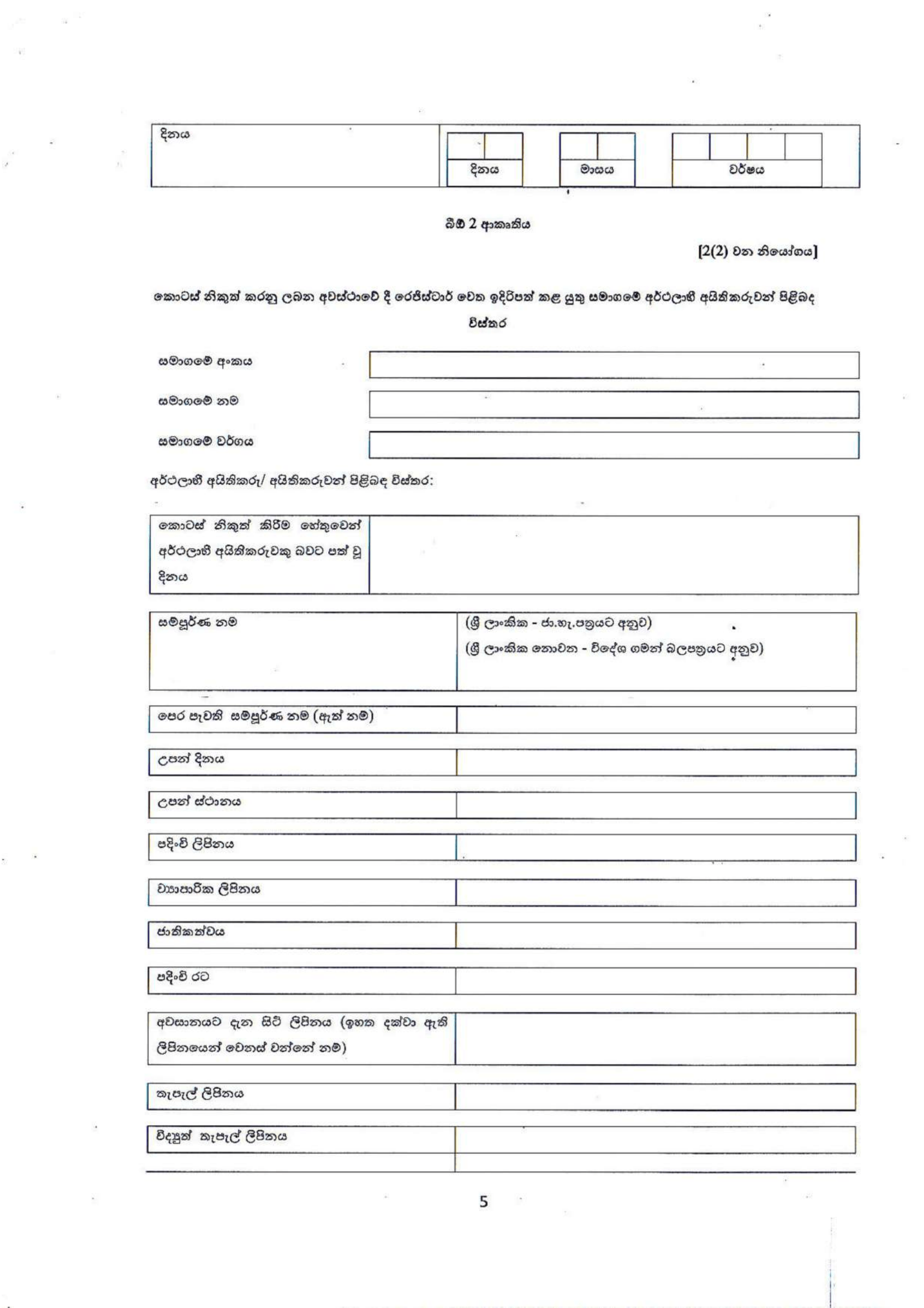FORM BO 05: BO දත්තවල නිරවද්යතාවය පිළිබඳ වගකීම දරන "බලයලත් පුද්ගලයා" නිල වශයෙන් පත් කිරීම.